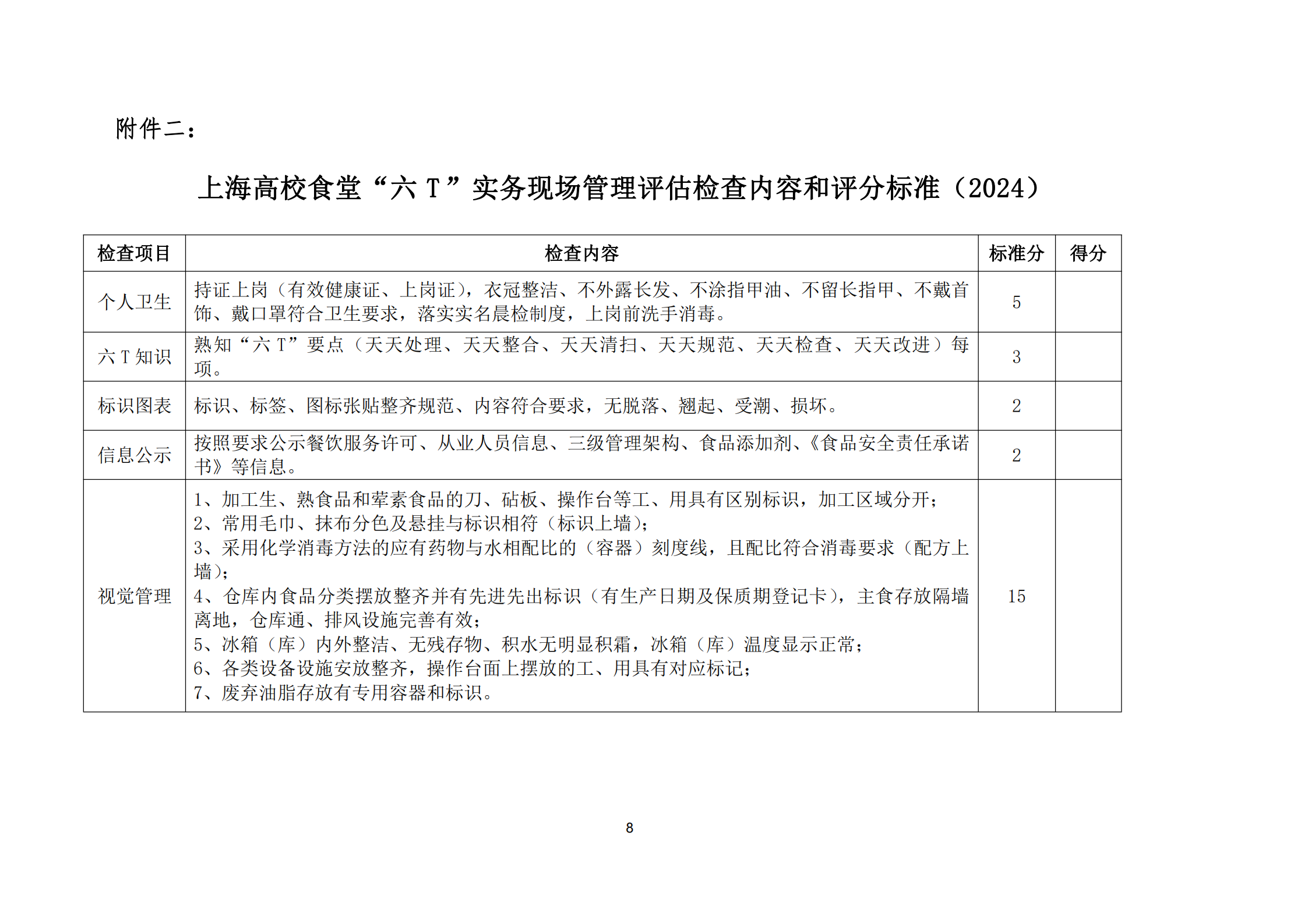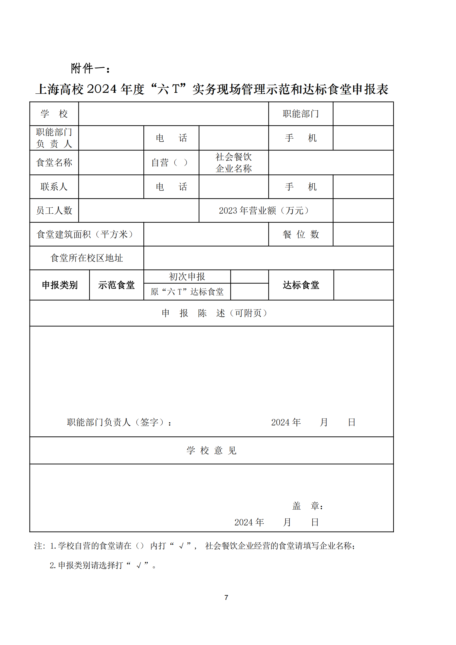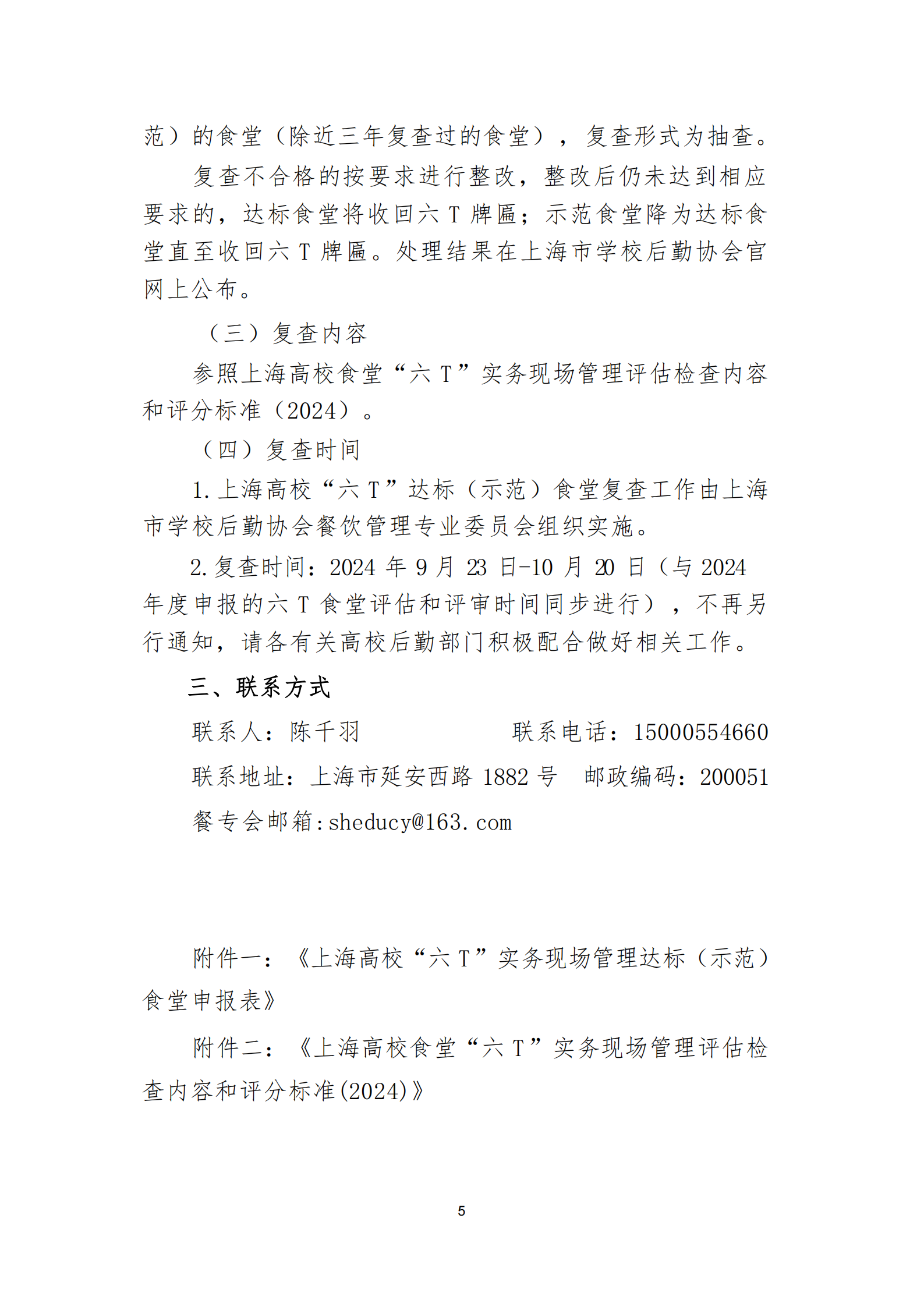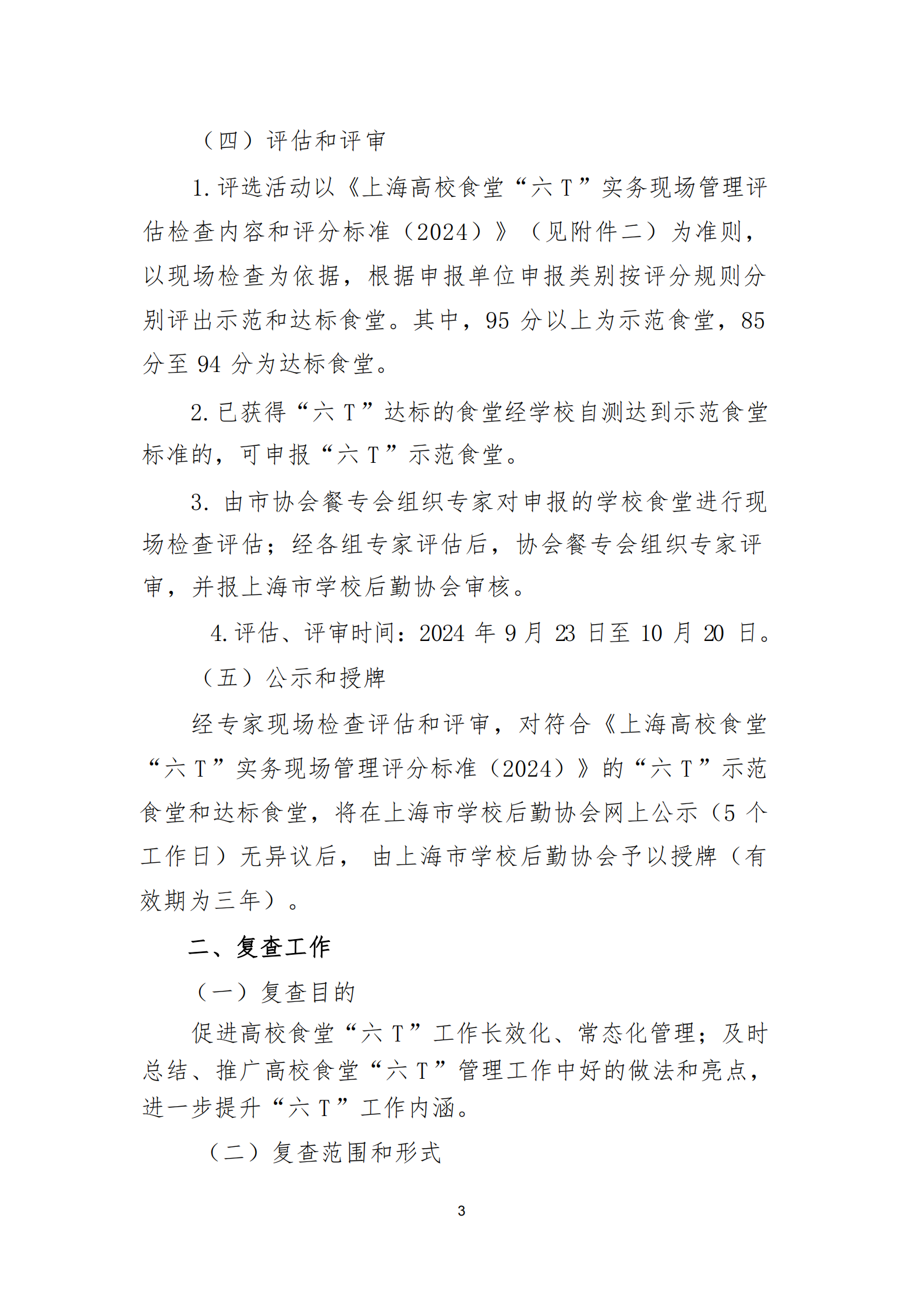 关于开展2024年度上海高等学校“六T”实务现场管理示范和达标食堂创建活动暨复查工作的通知