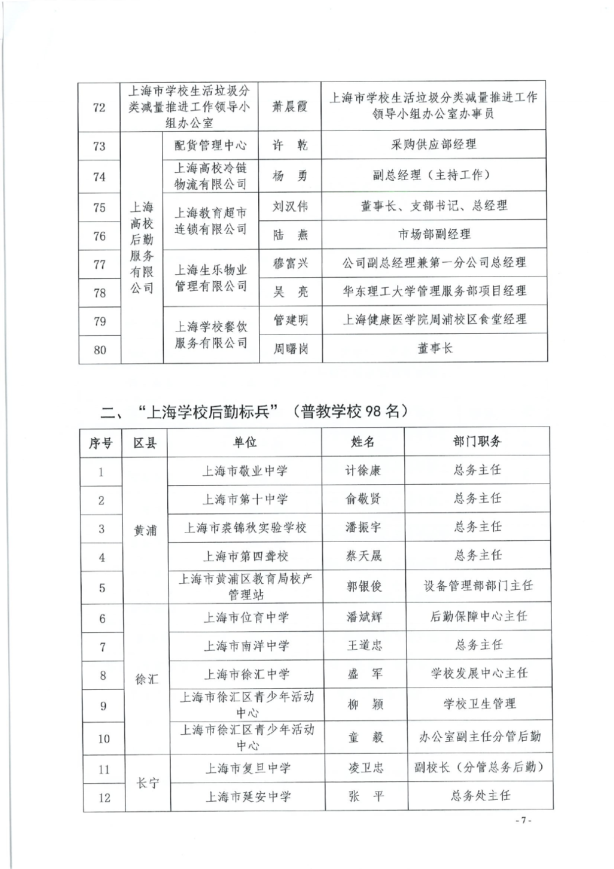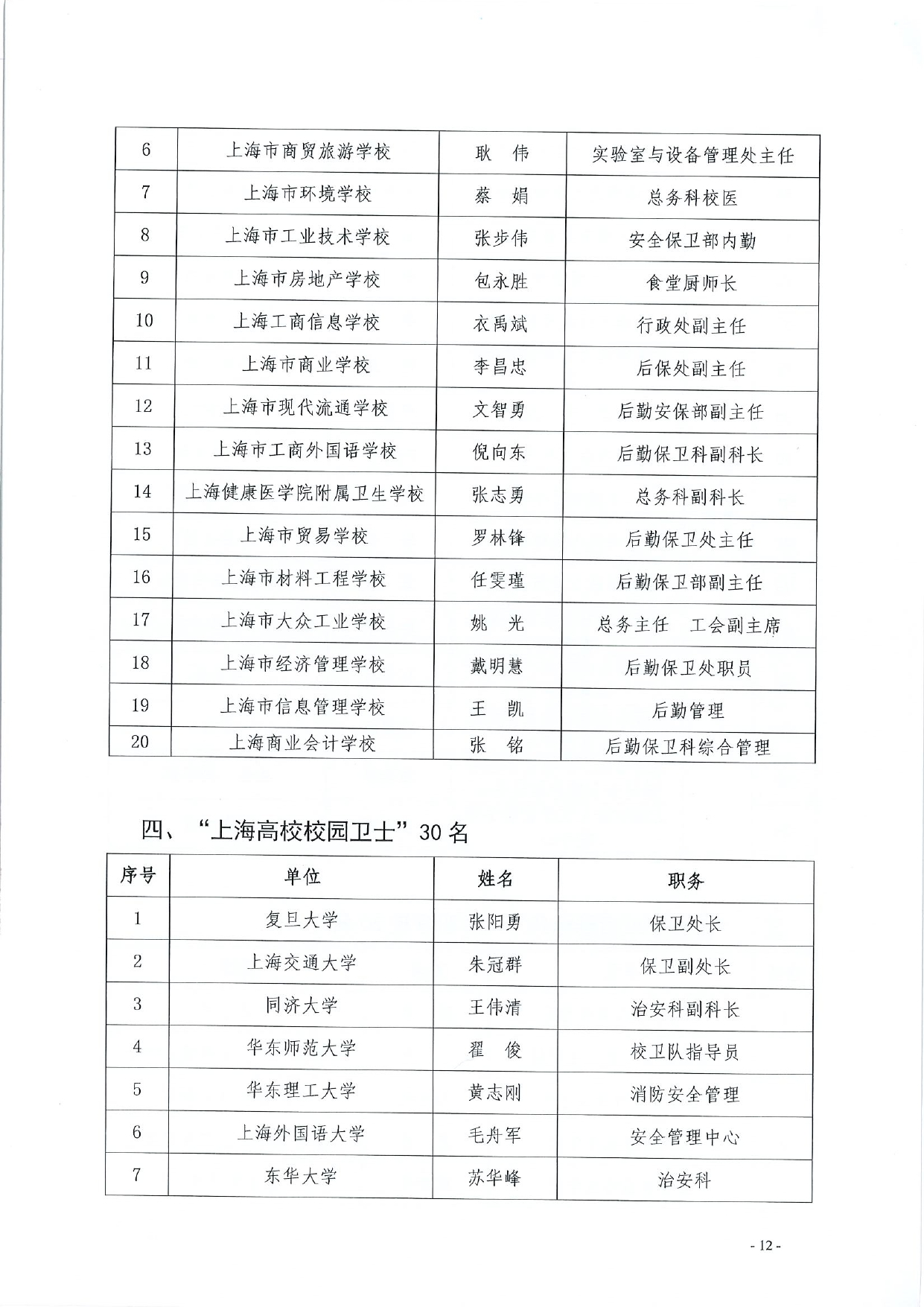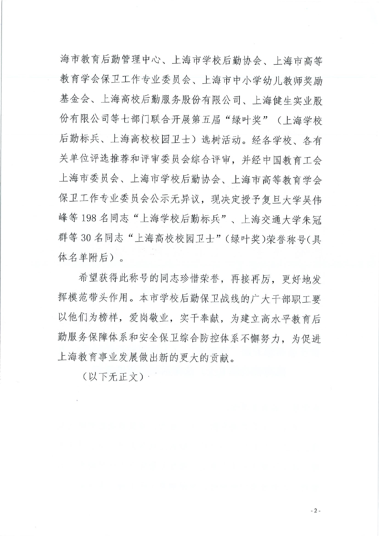 关于公布第五届“绿叶奖”(上海学校后勤标兵、上海高校校园卫士)选树活动结果的通知
