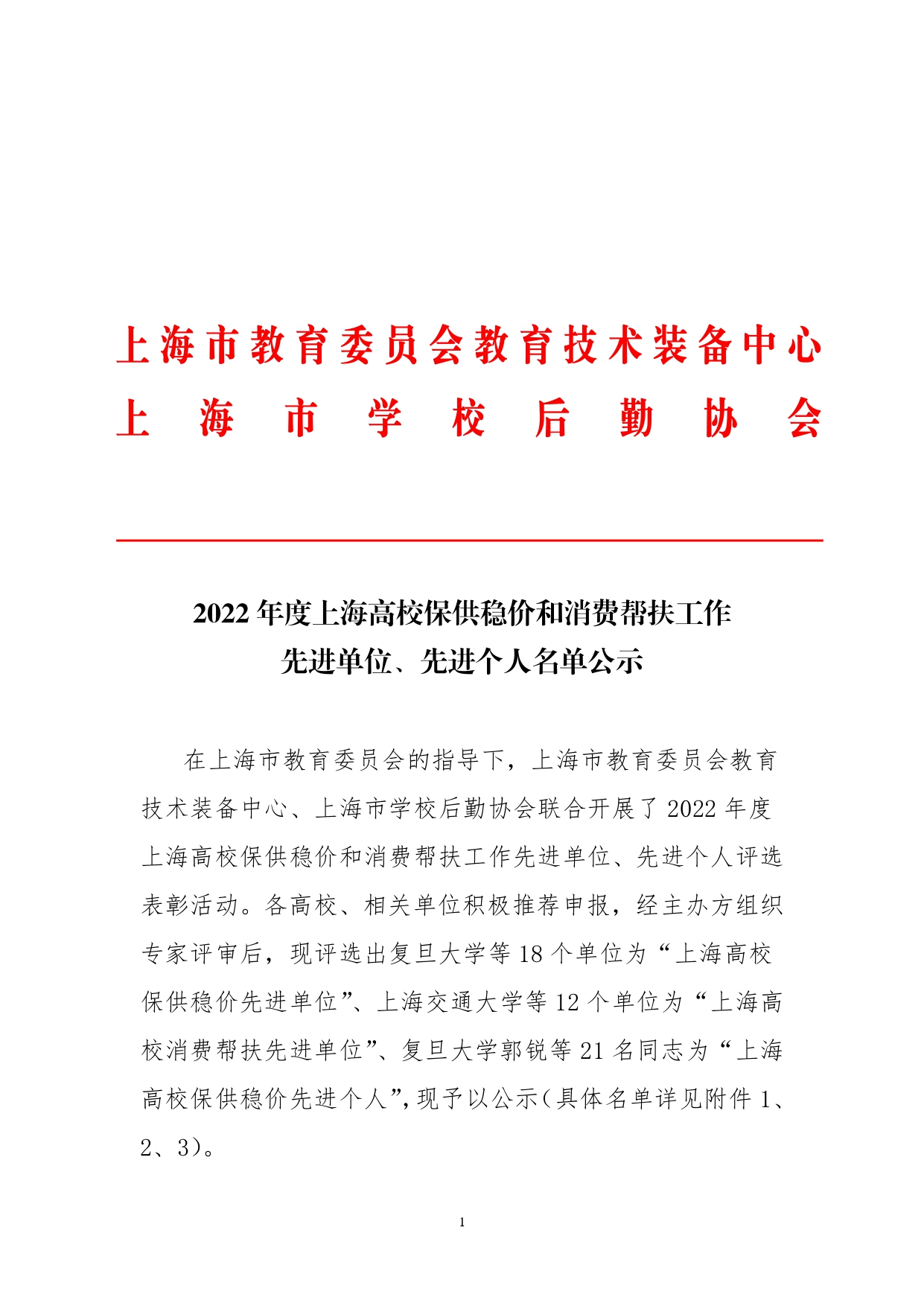 2022年度上海高校保供稳价和消费帮扶工作先进单位、先进个人名单公示