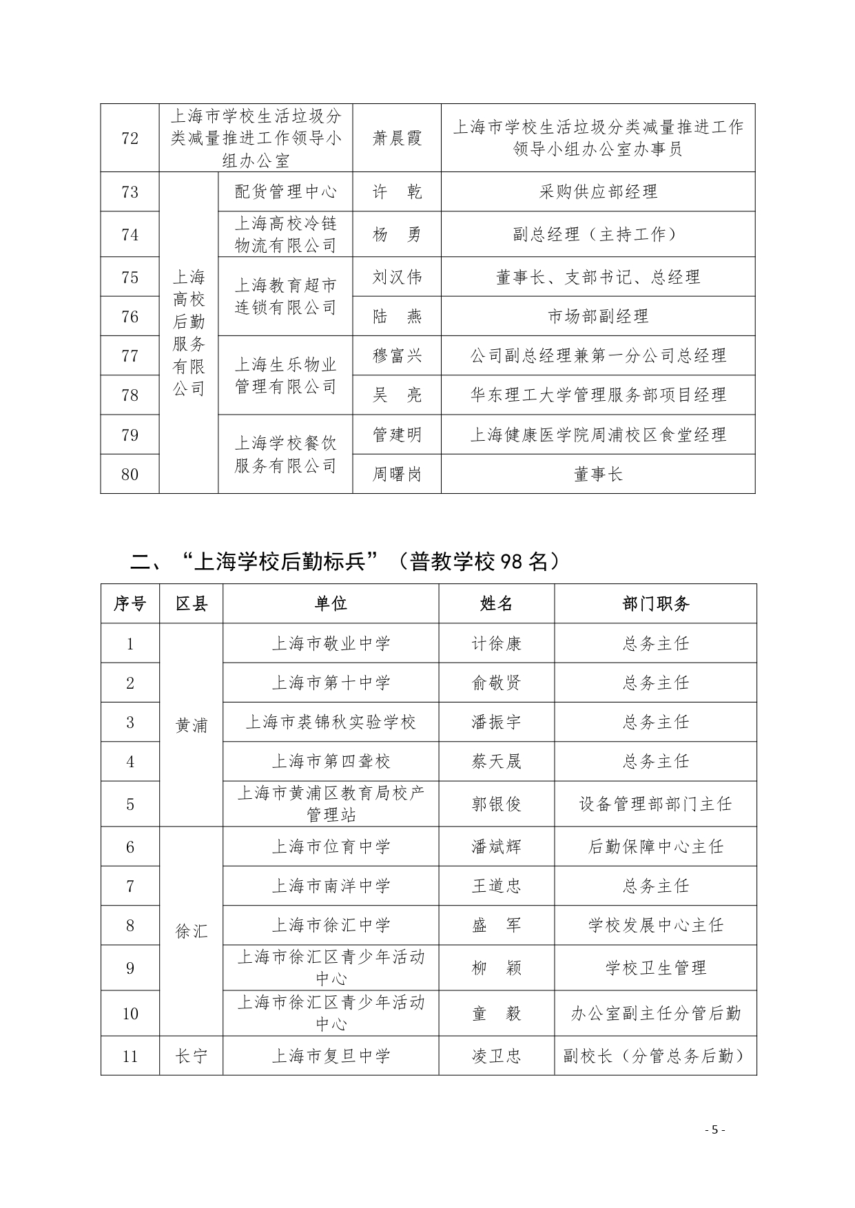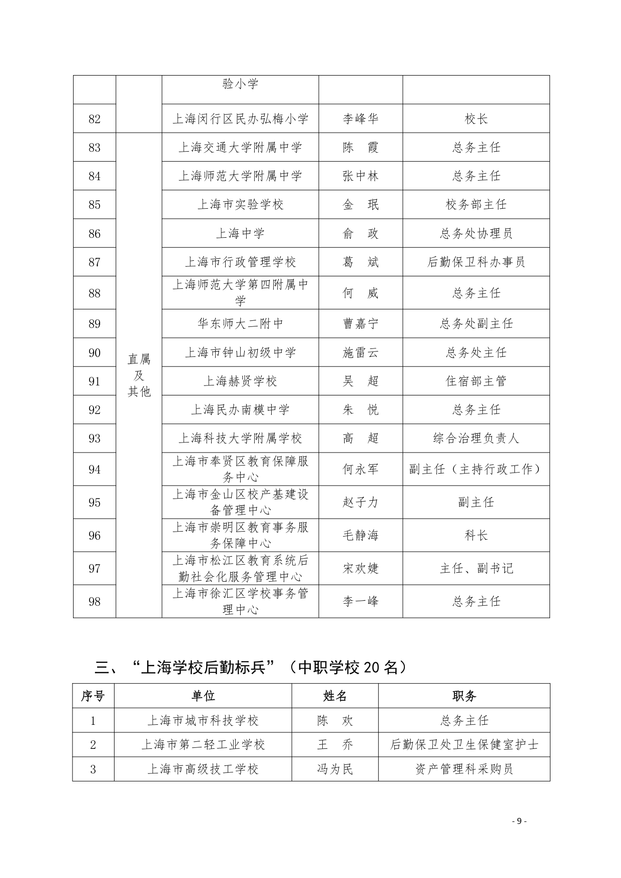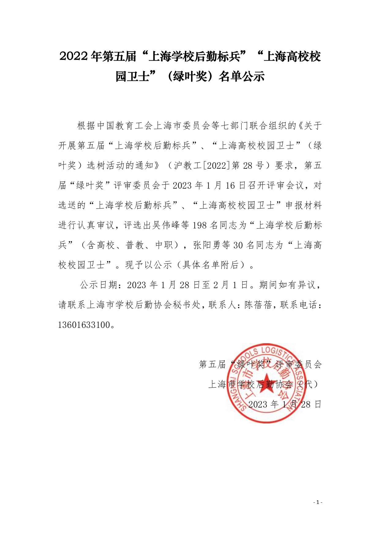 2022年第五届“上海学校后勤标兵”“上海高校校园卫士”(绿叶奖)名单公示
