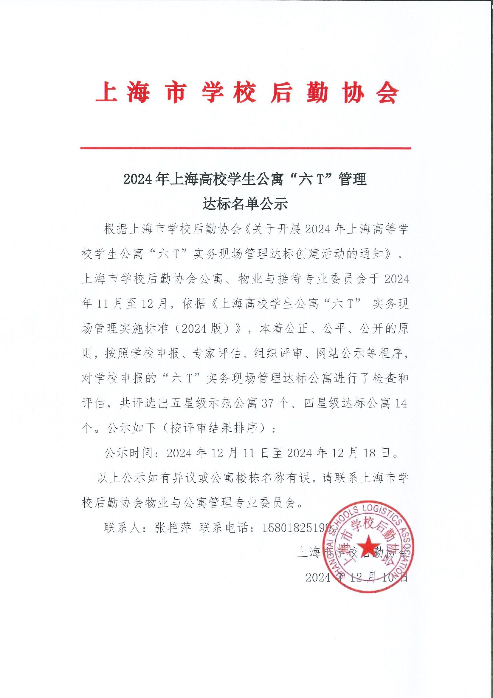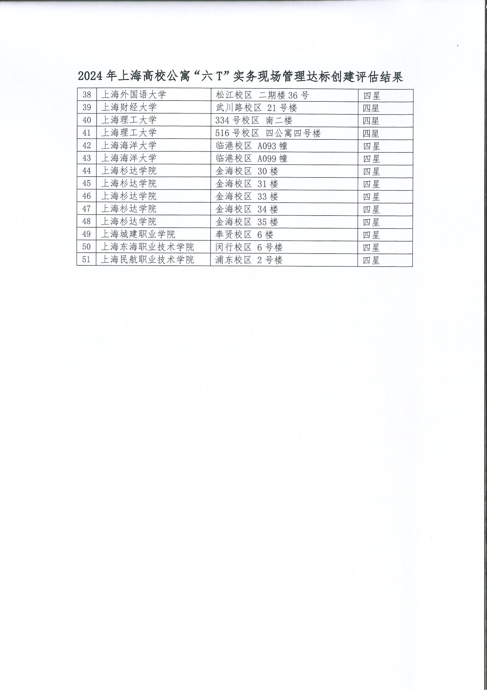 2024年上海高校学生公寓“六T”管理达标名单公示