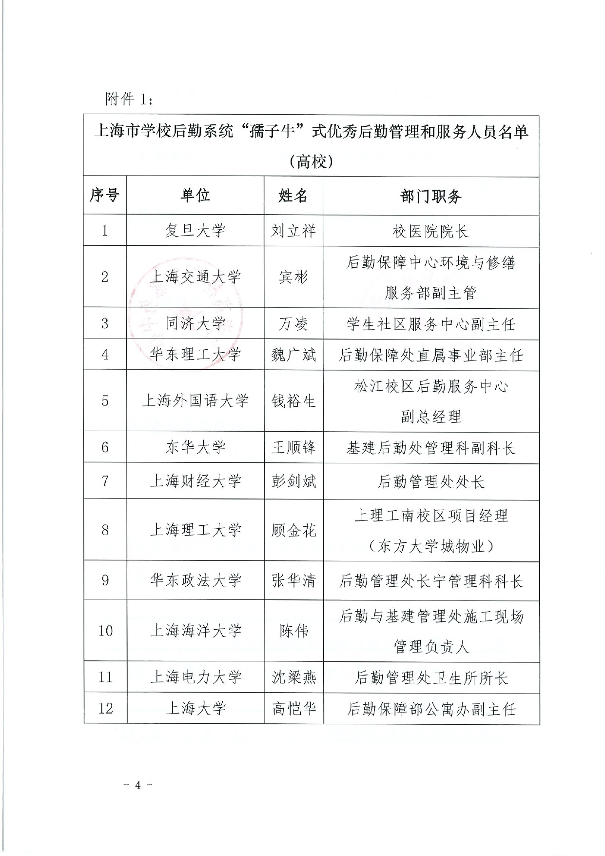 关于授予上海市学校后勤保卫系统“孺子牛”“拓荒牛”“老黄牛”式优秀管理服务人员称号的决定(终版)