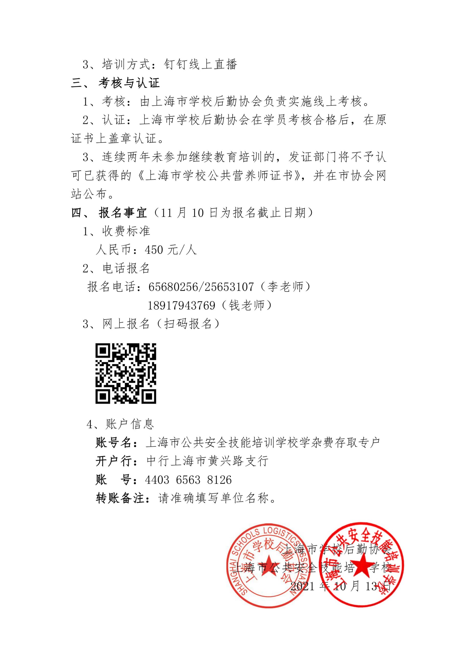 关于组织开展2021年《上海市学校公共营养师》继续教育培训的通知