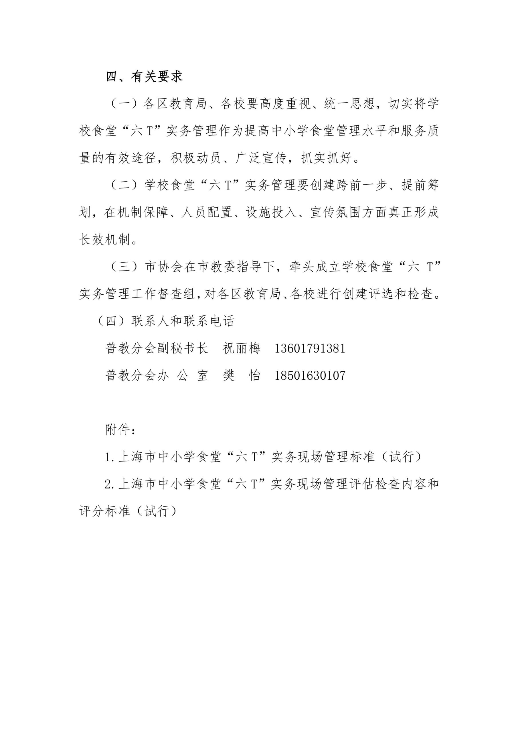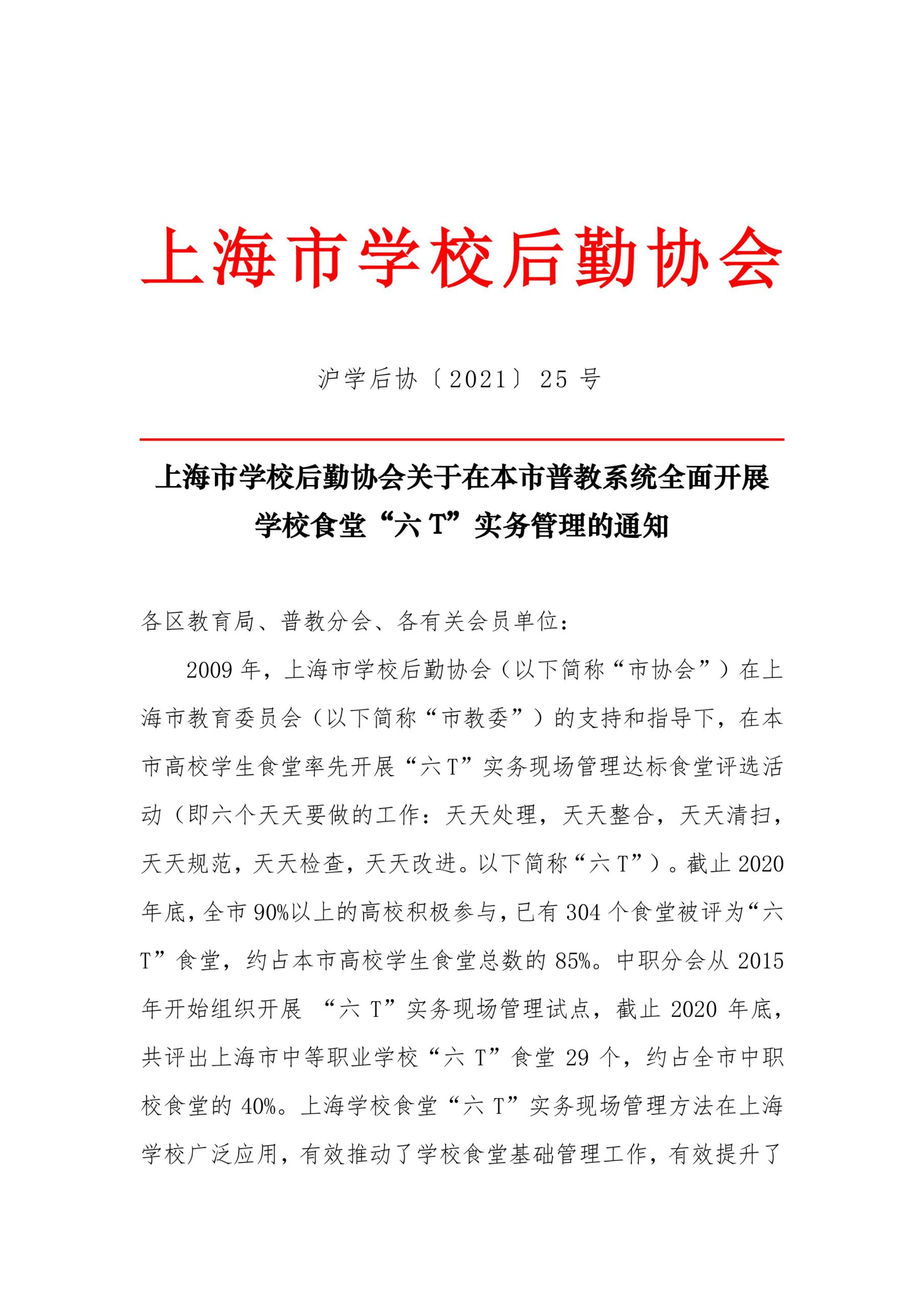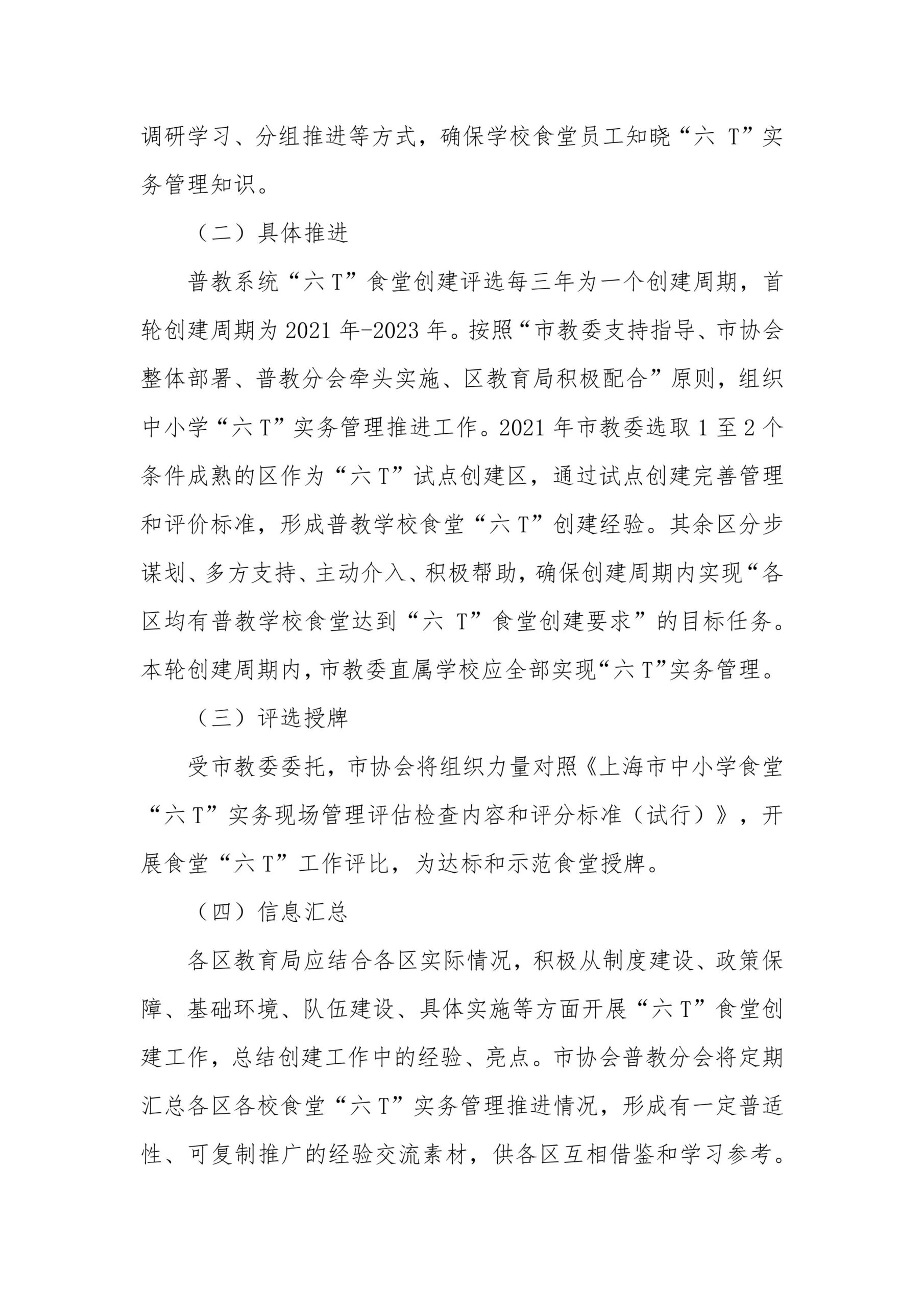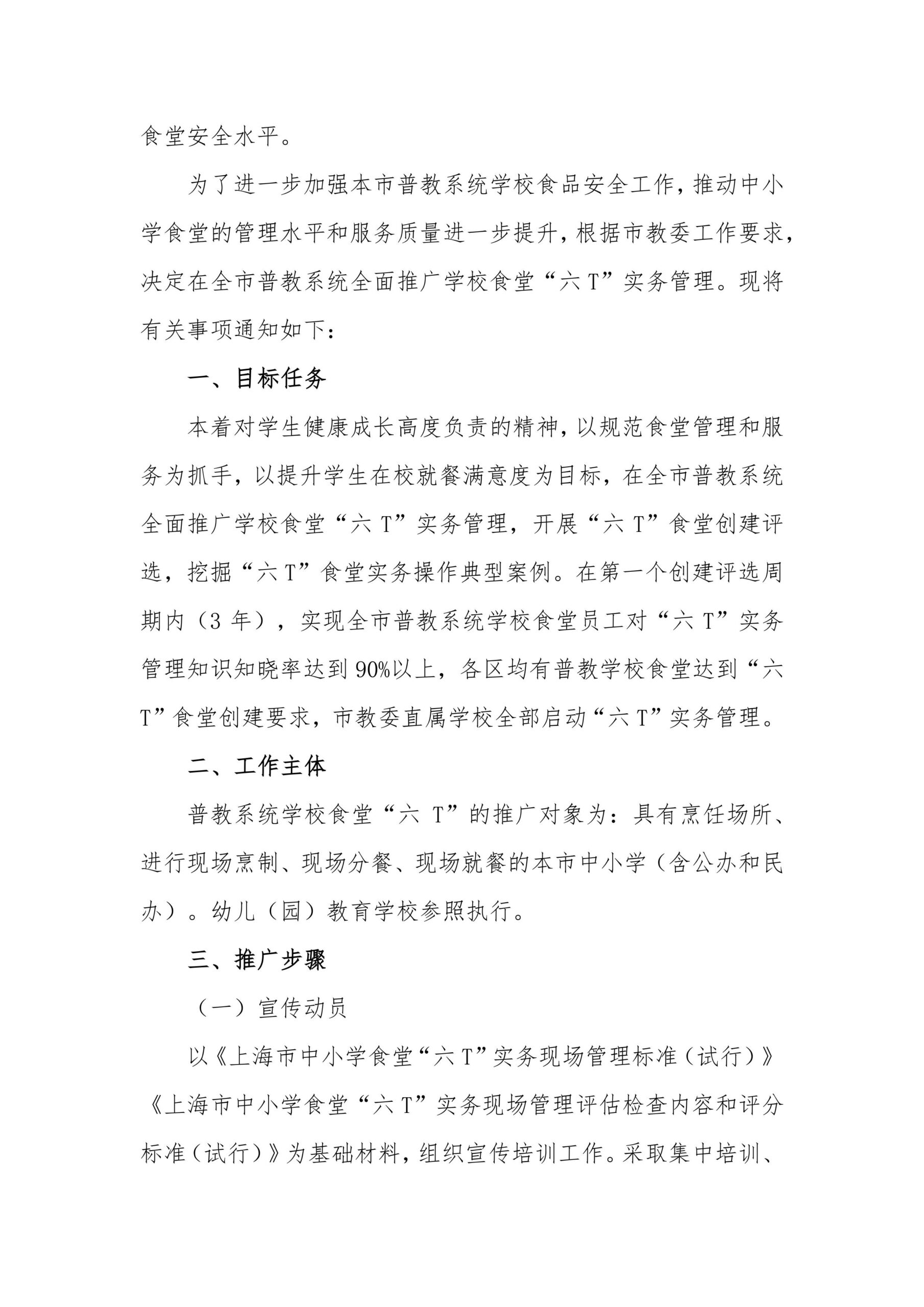 关于在本市普教系统全面开展学校食堂“六 T”实务管理的通知