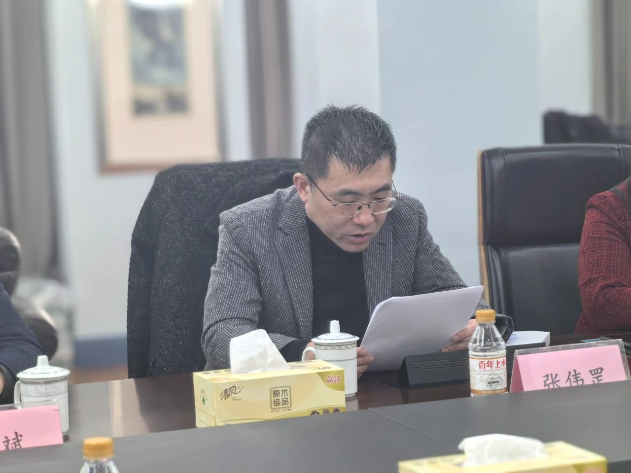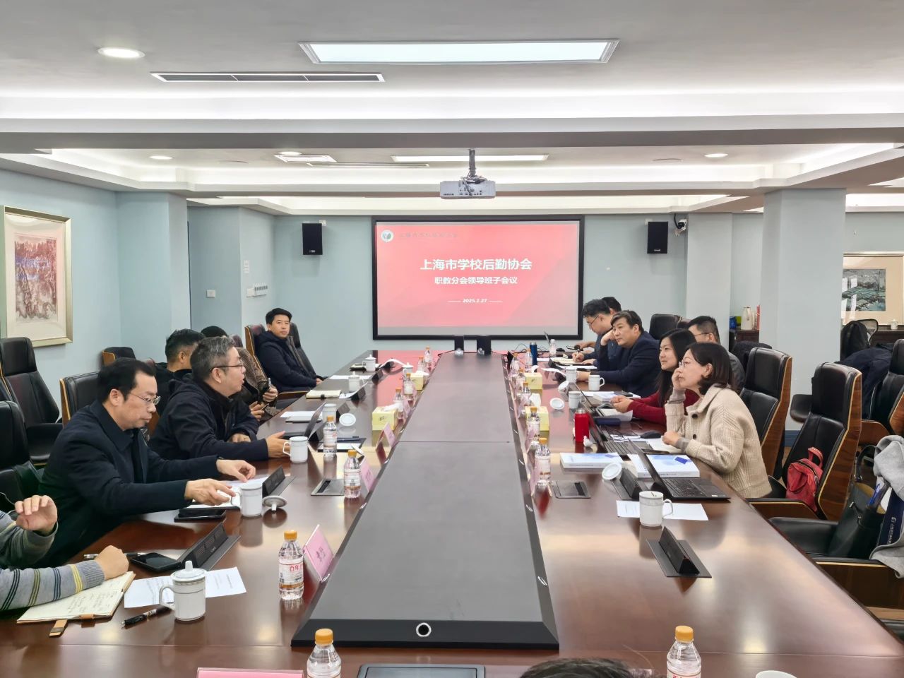 分支机构2024年工作总结及2025年工作务虚会精神、谋划2025年工作,2月27日下午职教分会召开2025年第一次领导班子会议。市教委学校后勤保卫处四级调研员、市协会副秘书长施丽君,职教分会常务副会长周齐佩、副会长兼秘书长张伟罡等分会领导班子成员出席,常务副秘书长李波主持会议。