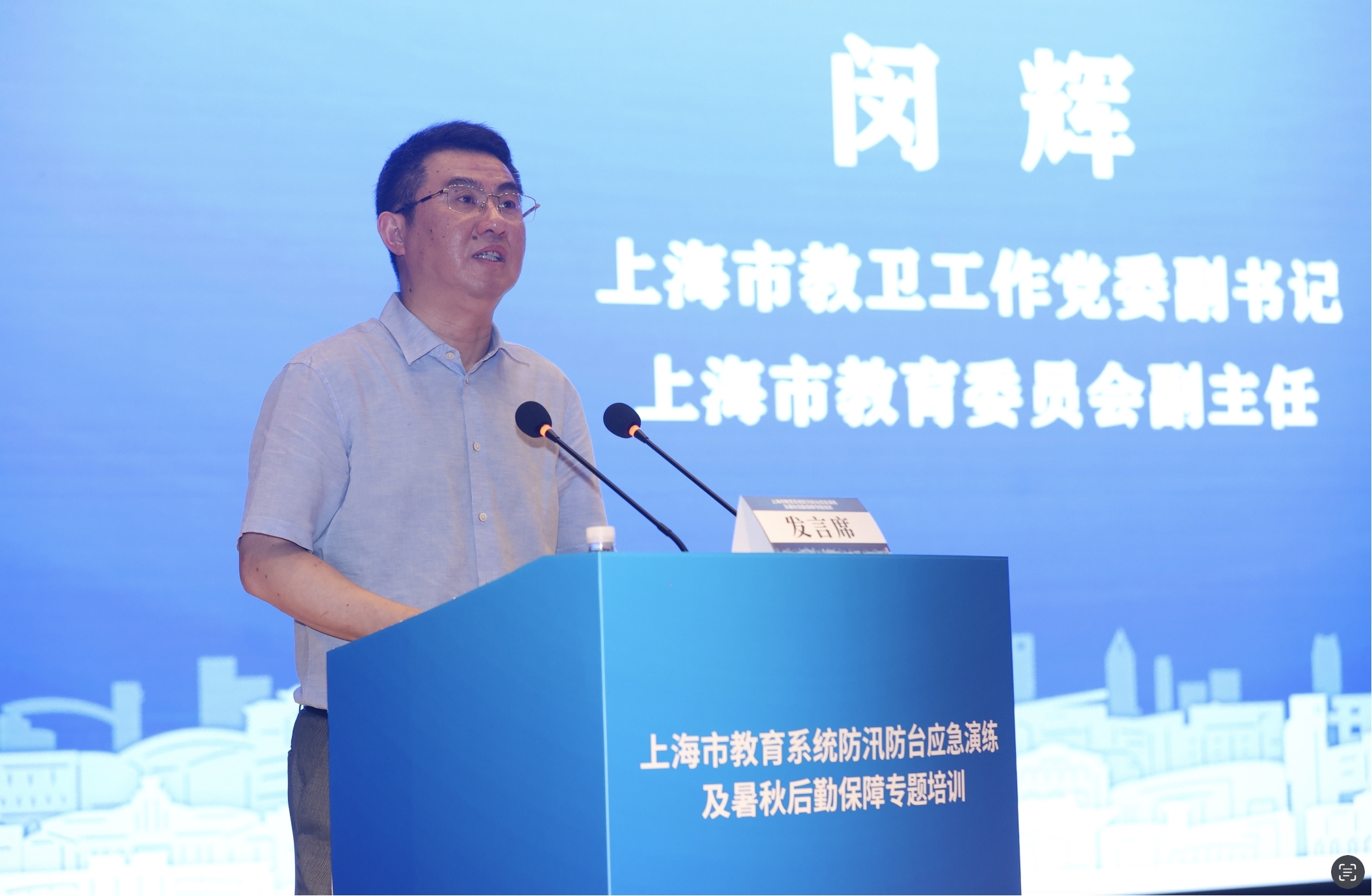 演练结束后,市防汛办副主任、市水务局副局长刘晓涛对演练活动进行点评。市教卫工作党委副书记、市教委副主任闵辉做总结讲话,对暑期学校后勤领域安全稳定工作进行了再动员、再部署、再强调。一是分析了学校后勤领域安全工作形势,具体就学校食品安全、燃气消防安全和防汛防台几方面通报了全国、全市近期发生的问题;二是强调了教育系统暑秋后勤安全方面要开展的重点工作;三是提出了下步工作要求,要求学校要抓高效协同协作,拧紧校园安全责任链条;要抓基础设施建设,扎紧校园安全工作篱笆;要抓员工安全培训,从源头防范校园安全隐患。最后他激励大家要再接再厉,继续打牢安全基础,为本市教育系统高质量发展提供坚强保障。